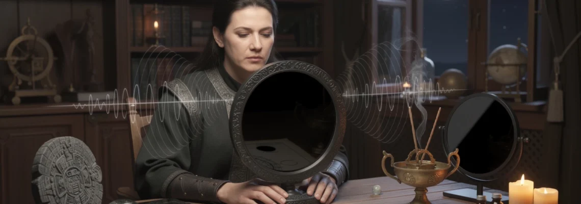 Entrer en état de conscience modifié pour la divination par miroir noir ne signifie pas perdre le contrôle ou “sortir de son corps”. Il s’agit plutôt d’ajuster votre regard et votre attention pour passer d’une vision ordinaire à une vision intérieure, comme lorsqu’on laisse un paysage se flouter pour mieux sentir son atmosphère. La clé de la catoptromancie réside dans la fixation oculaire souple et l’accommodation visuelle.